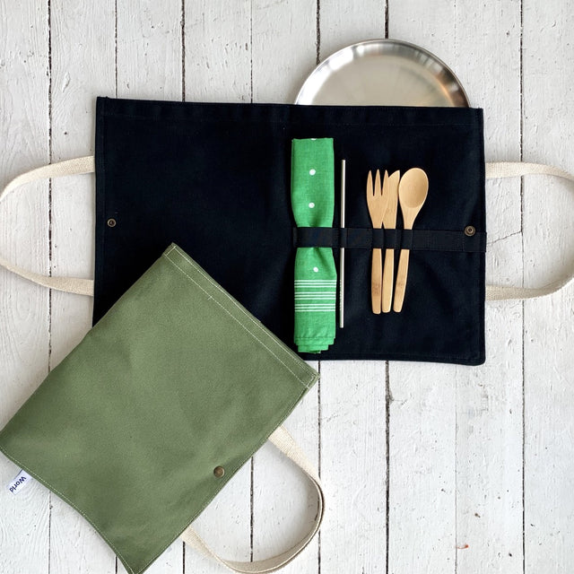 This kit is great for festivals, picnics, or visiting food trucks! Simply use any plate up to 9” then add in your cutlery, straw and a napkin for a perfect zero waste picnic kit! The carriers are made from environmentally friendly organic cotton by a local social enterprise, and make a great placemat or picnic spot so you can easily eat out on the grass!
