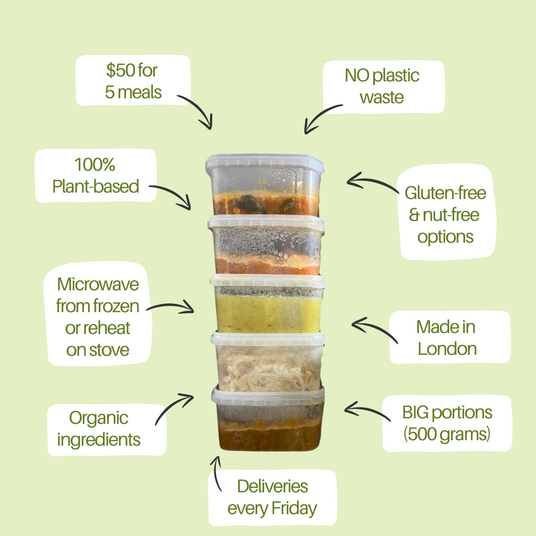 Reimagine's home-cooked meals are nutritious, delicious, 100% plant-based, and made with mostly organic ingredients.